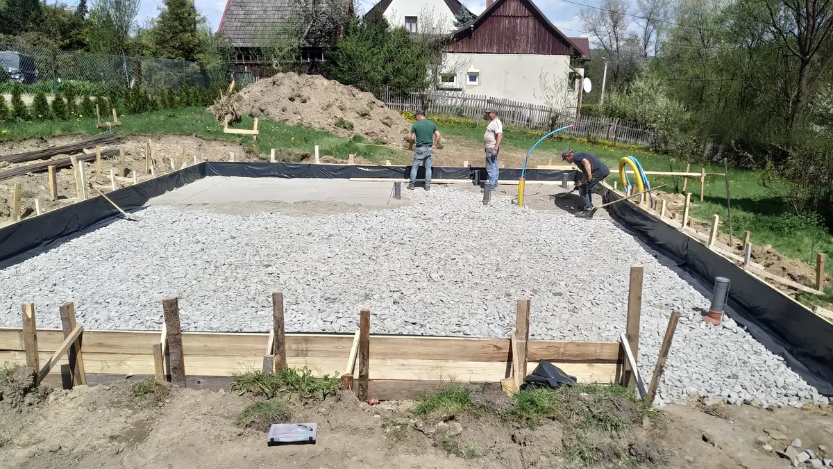 To właśnie teraz był czas na wykonanie wszelkich odpływów, zasilania wody itp. W przeciwieństwie do tradycyjnych fundamentów trzeba zrobić to na tym etapie.