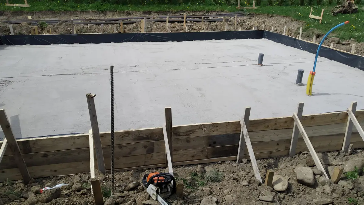 Tak przygotowane podłoże czekało na to co najważniejsze… Czyli beton. Beton jaki zamówiłem to B-25 o ile dobrze pamiętam. Warto dać trochę mocniejszy i ze sprawdzonej betoniarni. Niby to rzadkość, żeby beton był oszukany ale tak samo jak z paliwem się zdarza, że w 1 stacji na tysiąc jest zła jakość paliw, to tak samo dzieje się z betonem. Znajomemu zdarzyła się taka niemiła sytuacja. Więc lepiej uważać i nie kusić się na tzw dobrą cenę.
