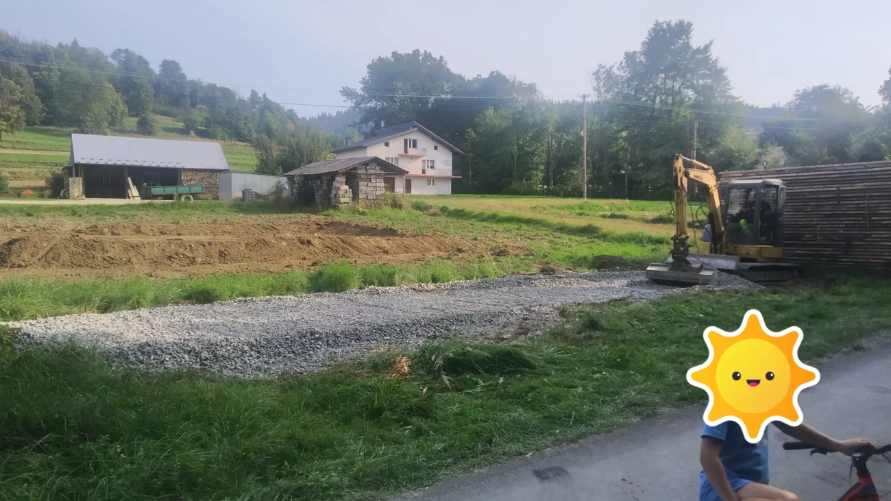 Tak właśnie wyglądało miejsce gdzie mamy montować nasz dom :D. Gdzieś na tym klińcu będziemy obrabiać płazówki a tam powyżej będzie montaż :))). Nieźle. Co nie 🙂 ? Całe życie na spontanie :D. Piotrek uwijał się z przygotowaniem gruntu na którym jeszcze niedawno ziemniaki rosły ;P.