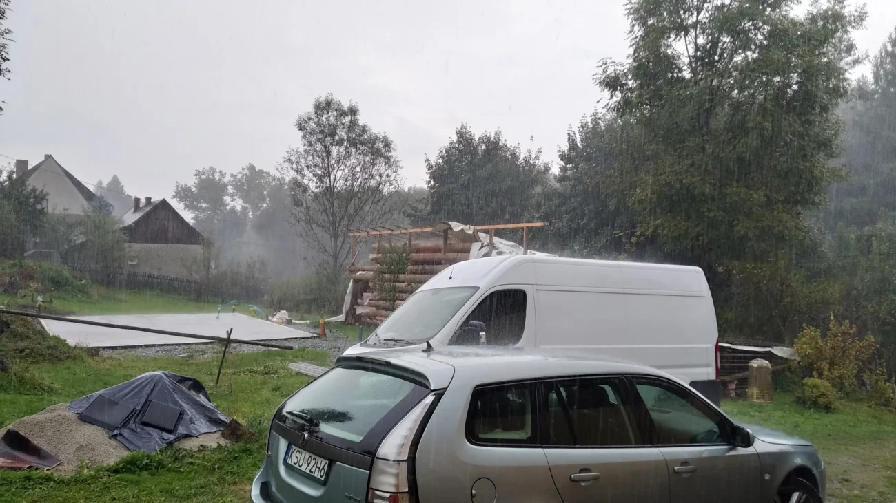 Oczywiście zaraz po odkryciu zza gór musiała przyjść burza. Dość podobna do tej przy laniu płyty 🙂 Taki o to kolejny koloryt dodany do mojej historii budowy domu ;).