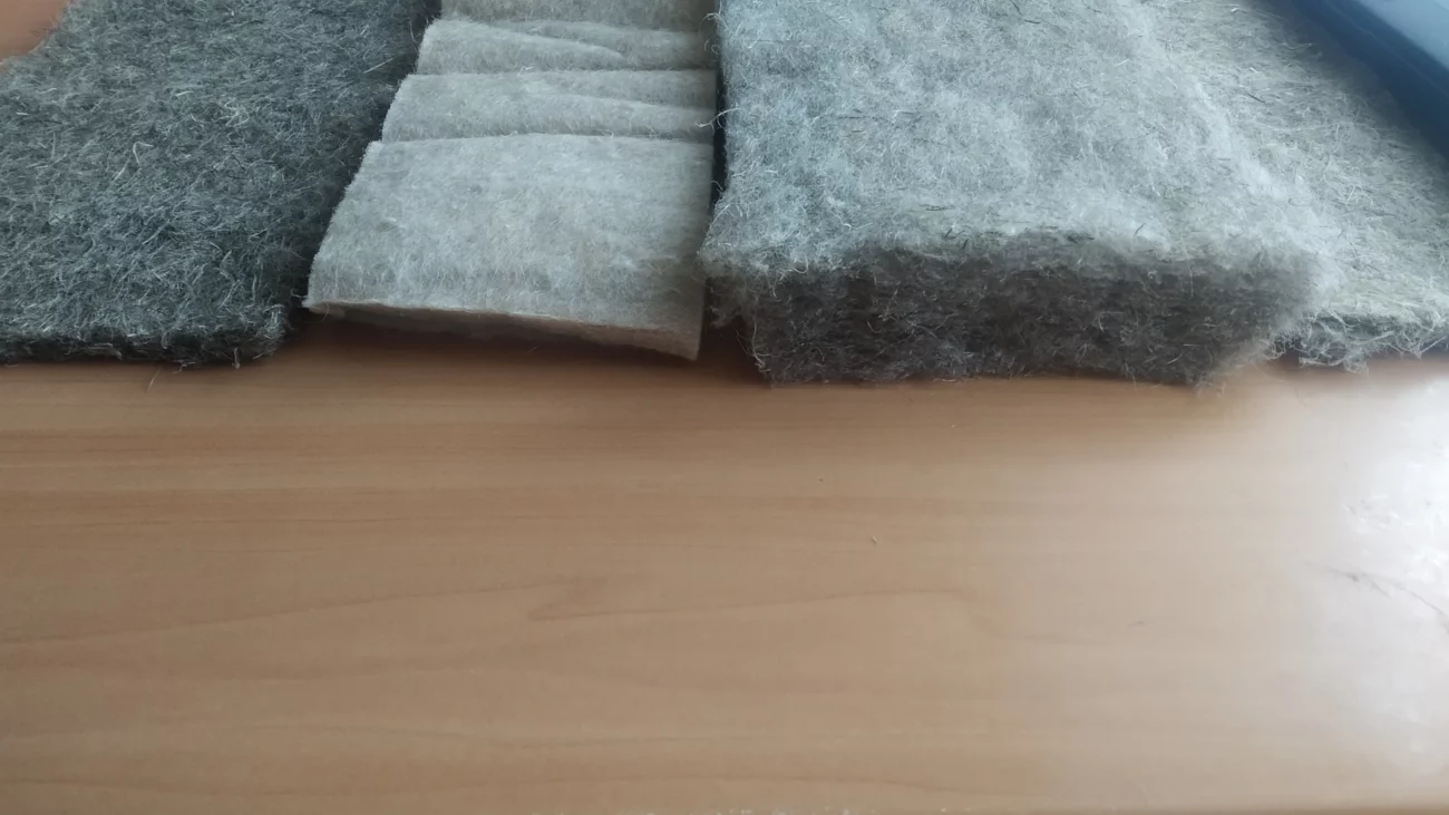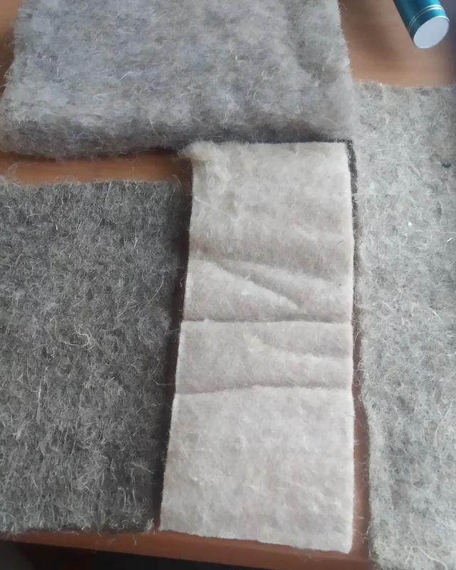 Patrząc od lewej: Wełna konopna o bardzo dużej gęstości na 1m2, juta, wełna konopna mniejszej gęstości, mieszanka wełny konopnej z jutą. Te materiały wziąłem pod lupę. Przechodziła przez myśl jeszcze wełna owcza. Też dobry według mnie materiał na uszczelnienie płazów ale cena była sporo wyższa akurat wtedy, poza tym szukałem czegoś co będzie naturalne w 100% i będzie wykazywało cechy powrotu do pierwotnego rozmiaru po ściśnięciu. Ważne też było dla mnie aby było odporne na wilgoć i wodę. Czyli po przyjęciu wody żeby miało zdolności do schnięcia i nie zmieniania swoich właściwości i parametrów.