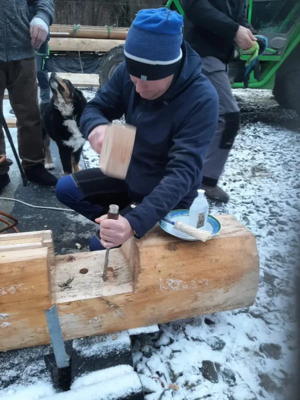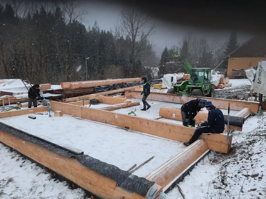 Niestety zima rozszalała się na dobre. Nie było szans aby składać dom. Zimno, wiało i sypało śniegiem. Uszczelek nie da się kleić, konopi montować. Decyzja była tylko jedna – czekamy na lepszą pogodę. Z racji tego, że święta za pasem więc i tak nie zrobimy zbyt wiele. Troszkę, żal bo chciałoby się żeby już było złożone i mały strach aby drewnem nie pokręciło zbytnio, bo przecież to jodła a nie wiadomo kiedy zrobi się pogoda… Poza tym ekipa od dachu też nie przyjdzie w taką zimę. No właśnie dach!!! Którego też jeszcze nie ma! Zamówiliśmy już wieki temu i dalej do nas nie przypłynął z Nowej Zelandii. Więc kolejny problem. Sprzedawca twierdzi, że na dniach ma być, ale to już słyszałem od października. Tym razem już podobno na 100% i do 2 tygodni będzie u nas na działce. Nic nie poradzimy. Czekamy z nadzieją na Nowy Rok 🙂