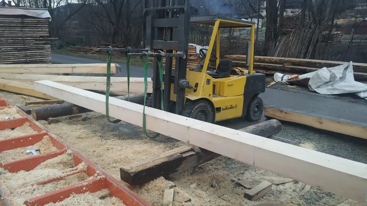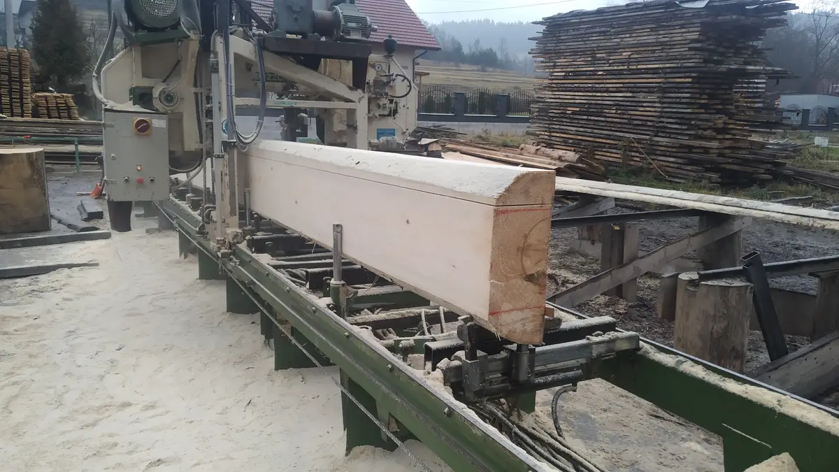 Nadeszła jedna z ważniejszych chwil, o której marzyłem. Czyli czas na sosręb, lub siostrzeń jak to się u nas mówi. Czyli najgłówniejsza belka w całym domu. Według mnie serce drewnianej chałupy. Co prawda często takiej belki obecnie nie montuję się ale z racji tego, że nasz dom z zewnątrz ma być wpisany w podhalańską tradycję to taka belka musi być :). Miałem na ten element upatrzony kawałek a raczej kawał drewna ale zużyliśmy ją na ściany :). W sumie to mi się zapomniało o sosrębie i dlatego poszła w ściany ;). Zatem trzeba było coś wykombinować z dokupionego materiału. Na pierwszy rzut oka jeden półbal był w miarę bez sęka ale za to był mega czarny. Wyglądał brzydko. Ryzyk fizyk. Tniemy tą brzydką płazówkę na sosręb. Wymierzyliśmy wymiary chyba 34x24cm żeby była naprawdę solidna i było na czym porzeźbić.