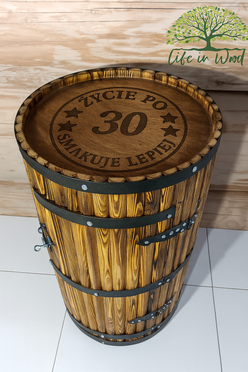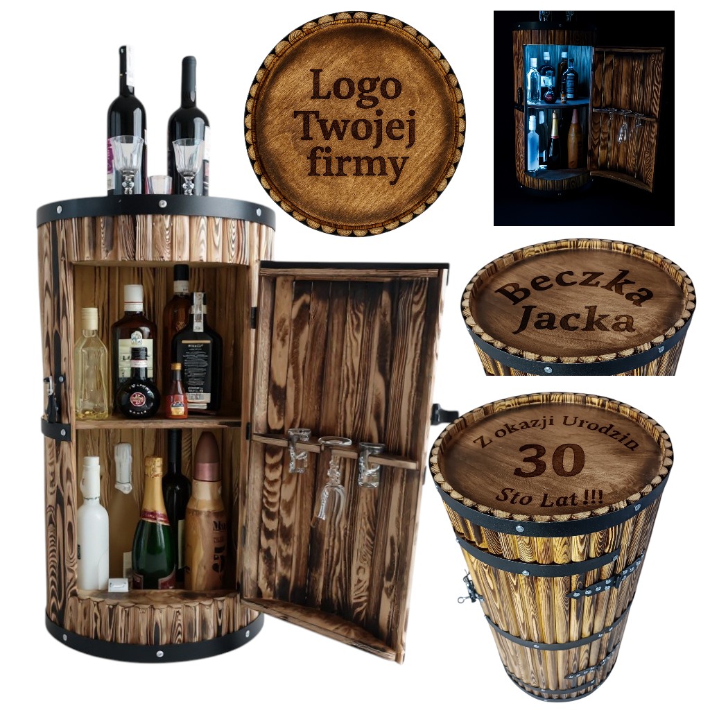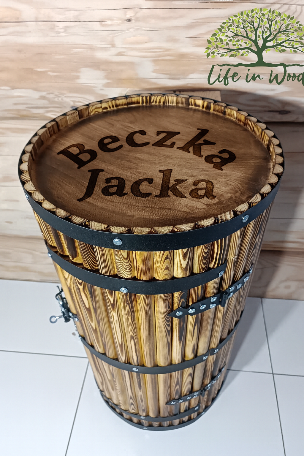 Stylowy barek w formie drewnianej beczki to wyjątkowy dodatek do domu, biura czy lokalu. Wykonany z polskiego świerku, opalany i zabezpieczony bezbarwnym lakierem, łączy w sobie elegancję, trwałość i funkcjonalność. To produkt w 100% polski, tworzony z dbałością o każdy detal.