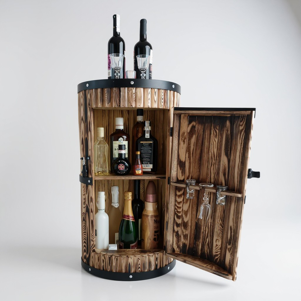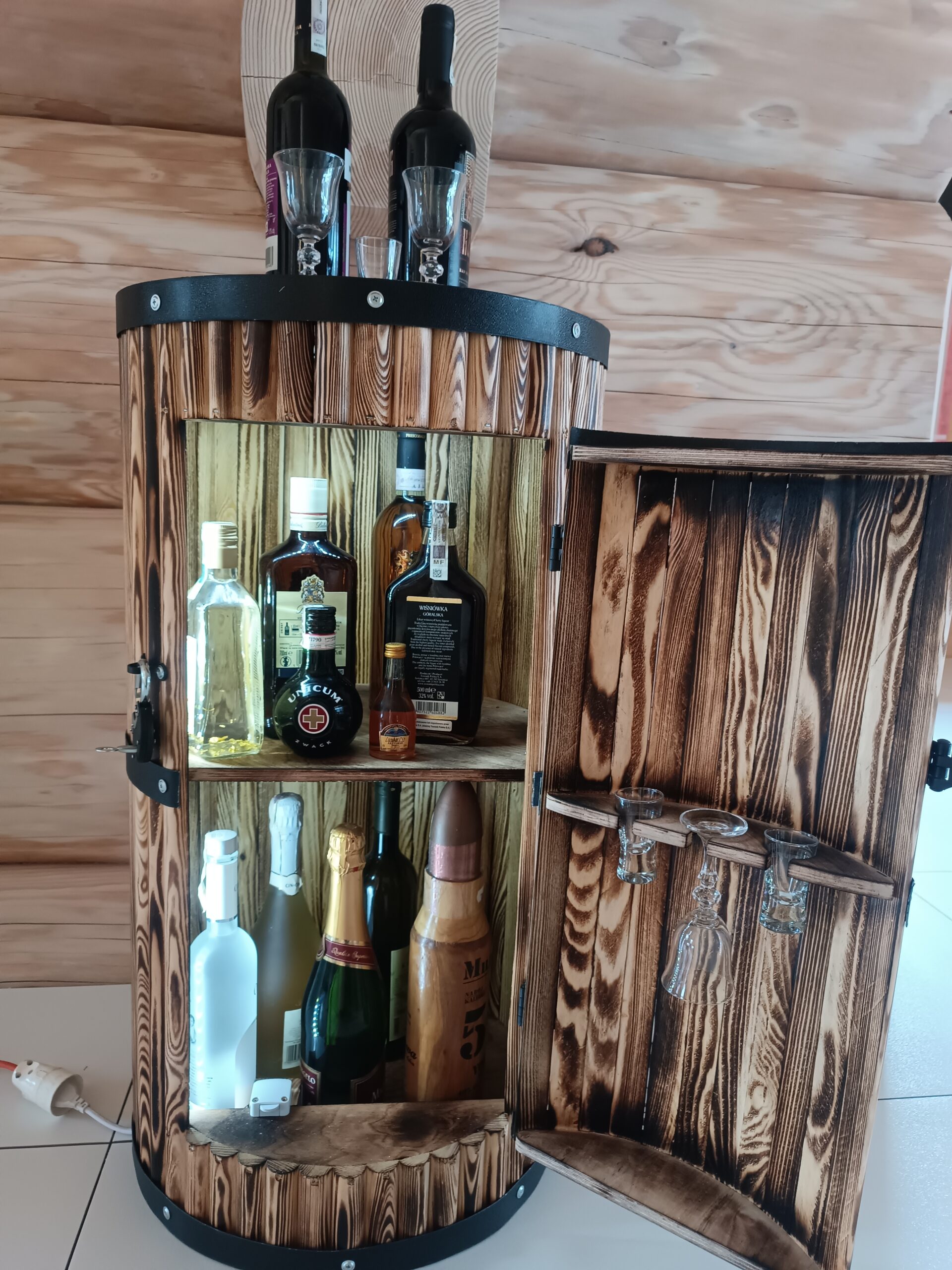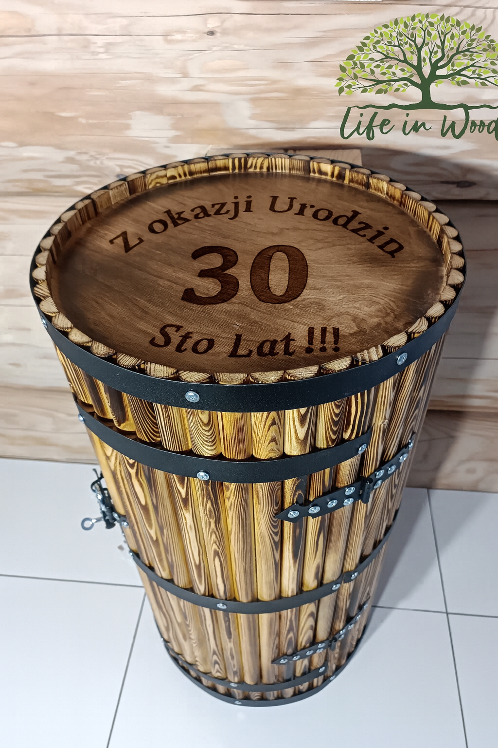 Stylowy barek w formie drewnianej beczki to wyjątkowy dodatek do domu, biura czy lokalu. Wykonany z polskiego świerku, opalany i zabezpieczony bezbarwnym lakierem, łączy w sobie elegancję, trwałość i funkcjonalność. To produkt w 100% polski, tworzony z dbałością o każdy detal.