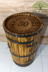 Barek na alkohol w kształcie beczki z grawerem okolicznościowym lub logo firmowym