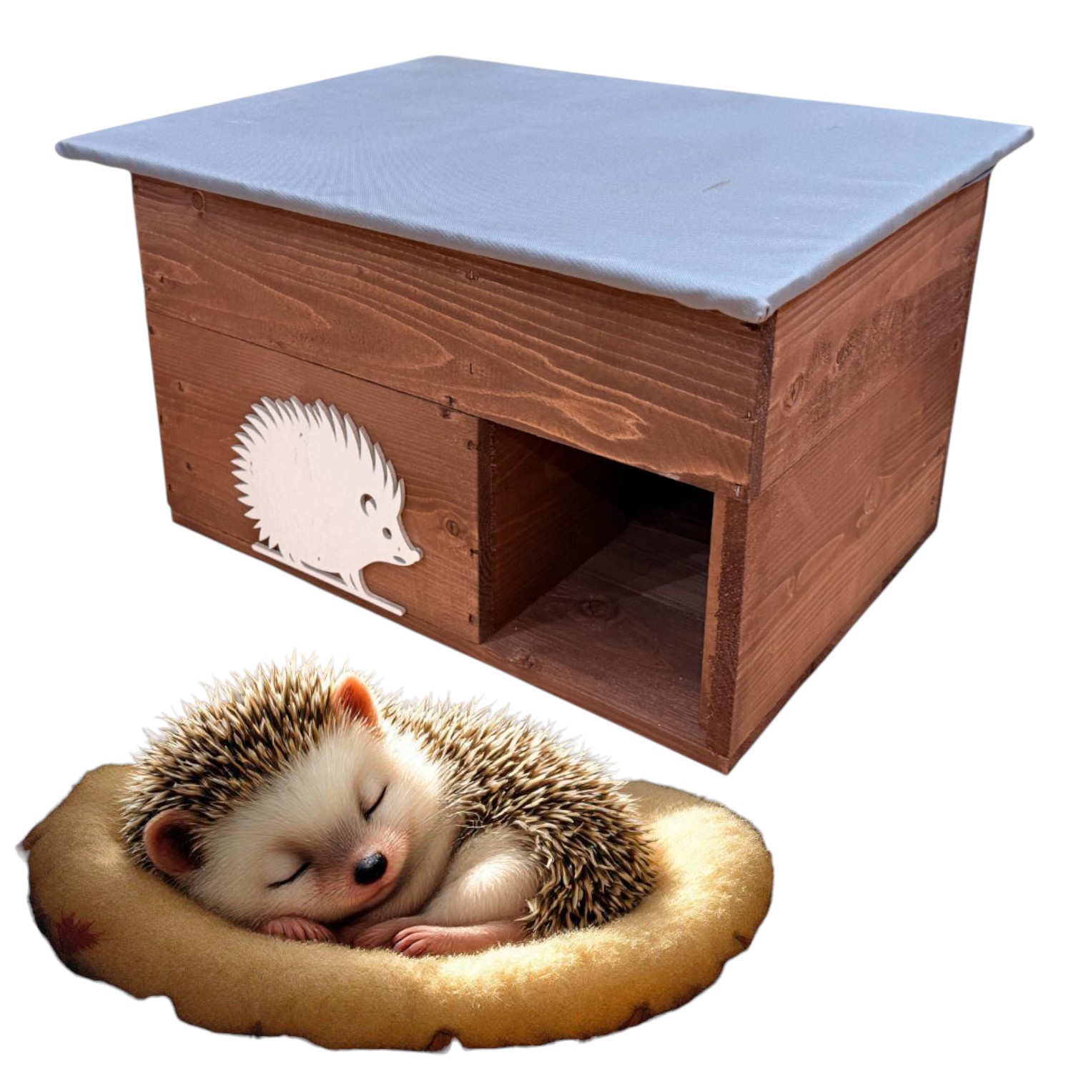 Daszek jest pokryty specjalnym materiałem aby ochronić jeże przed deszczem, śniegiem czy słońcem
