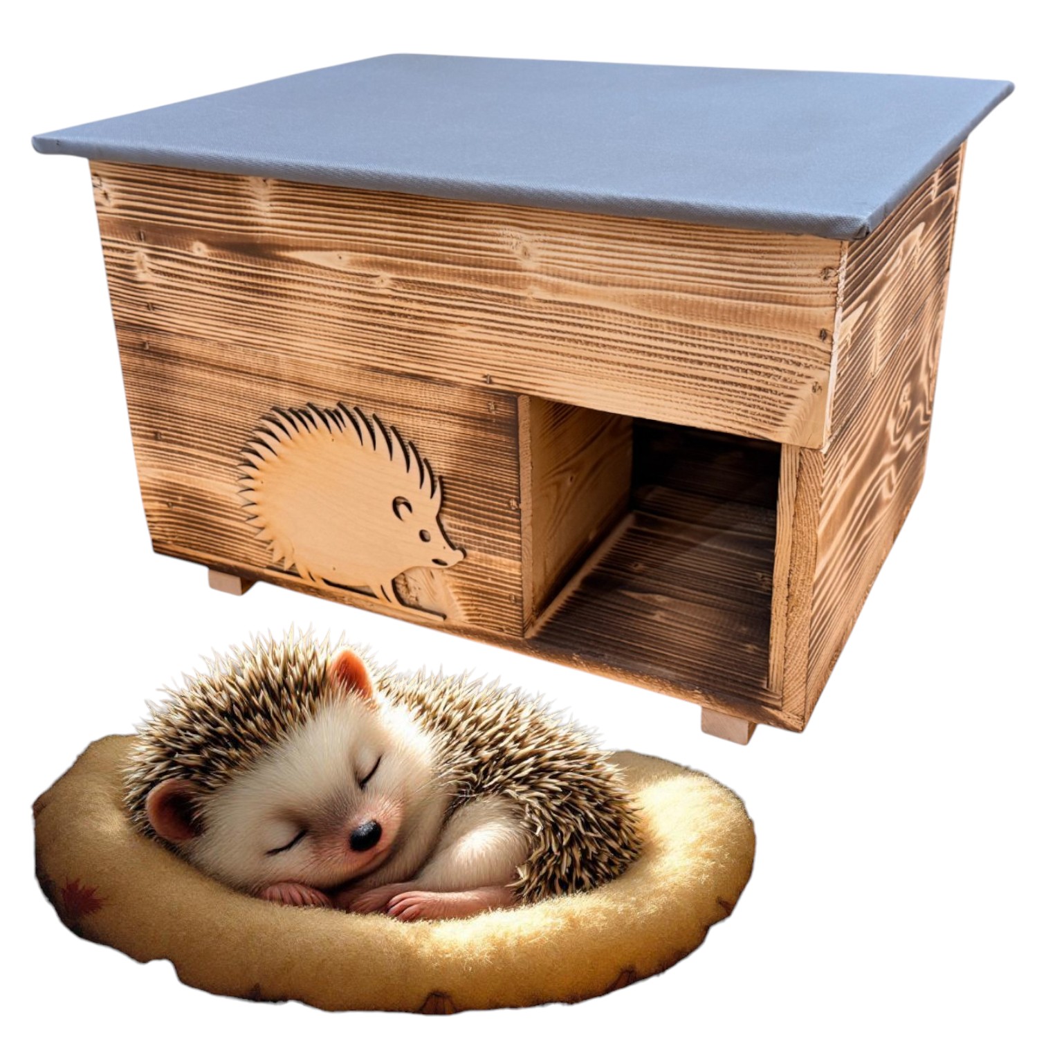 🦔 Drewniany domek dla jeża – opalany lub brązowy – naturalne schronienie do ogrodu