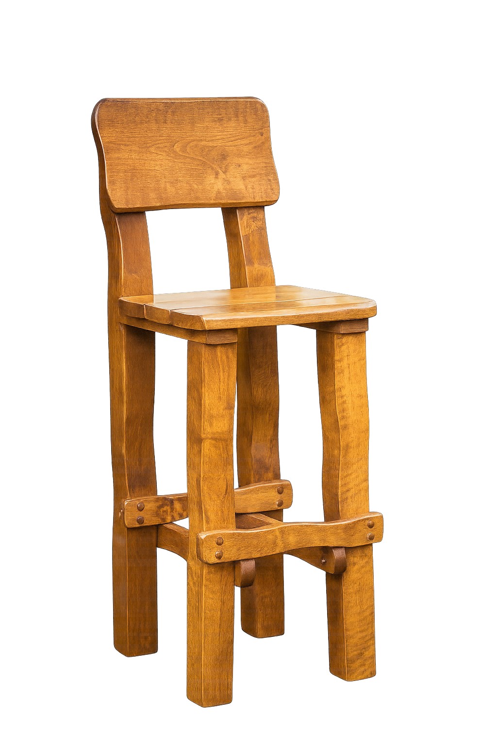 Solidny hoker barowy z litego drewna olchowego z oparciem. Masywny, ciężki i wygodny, ręcznie robiony w Polsce. Gotowy w całości – bez montażu. Idealny do kuchni, tarasu, pubów, barów, browarów i restauracji.