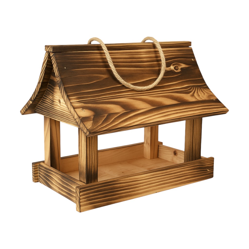 Drewniany karmnik dla ptaków – opalany + karma 100 g GRATIS