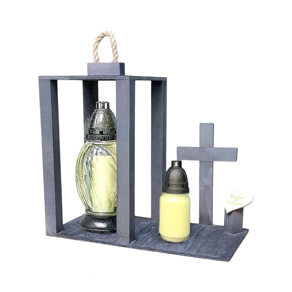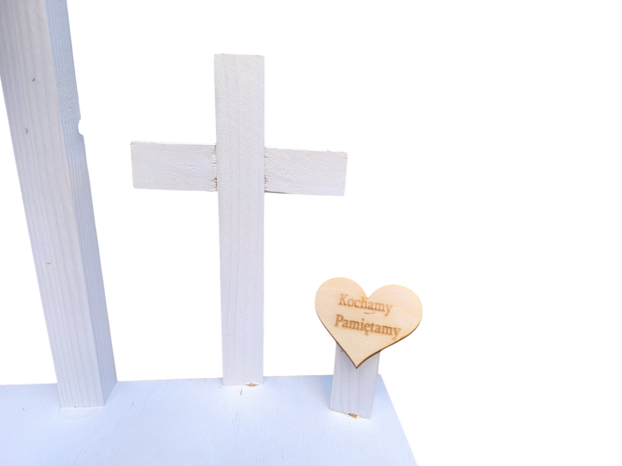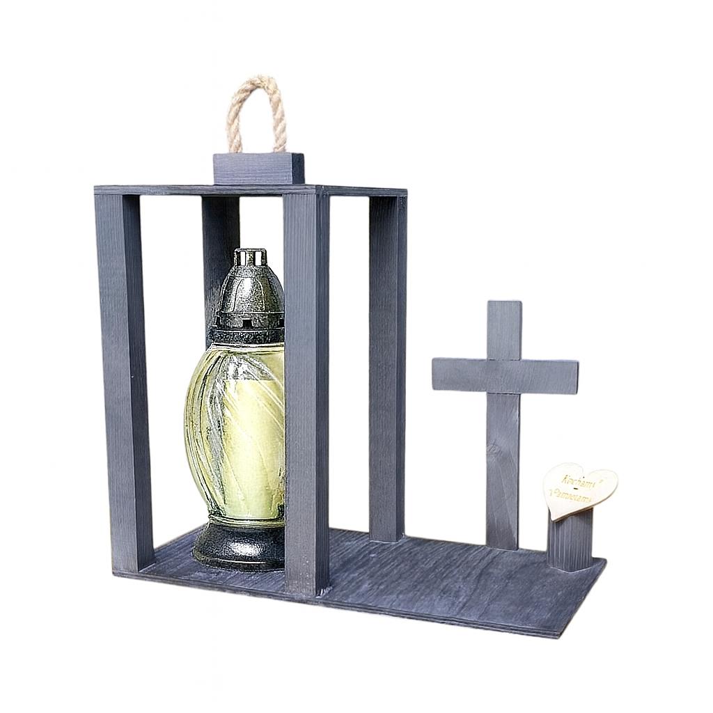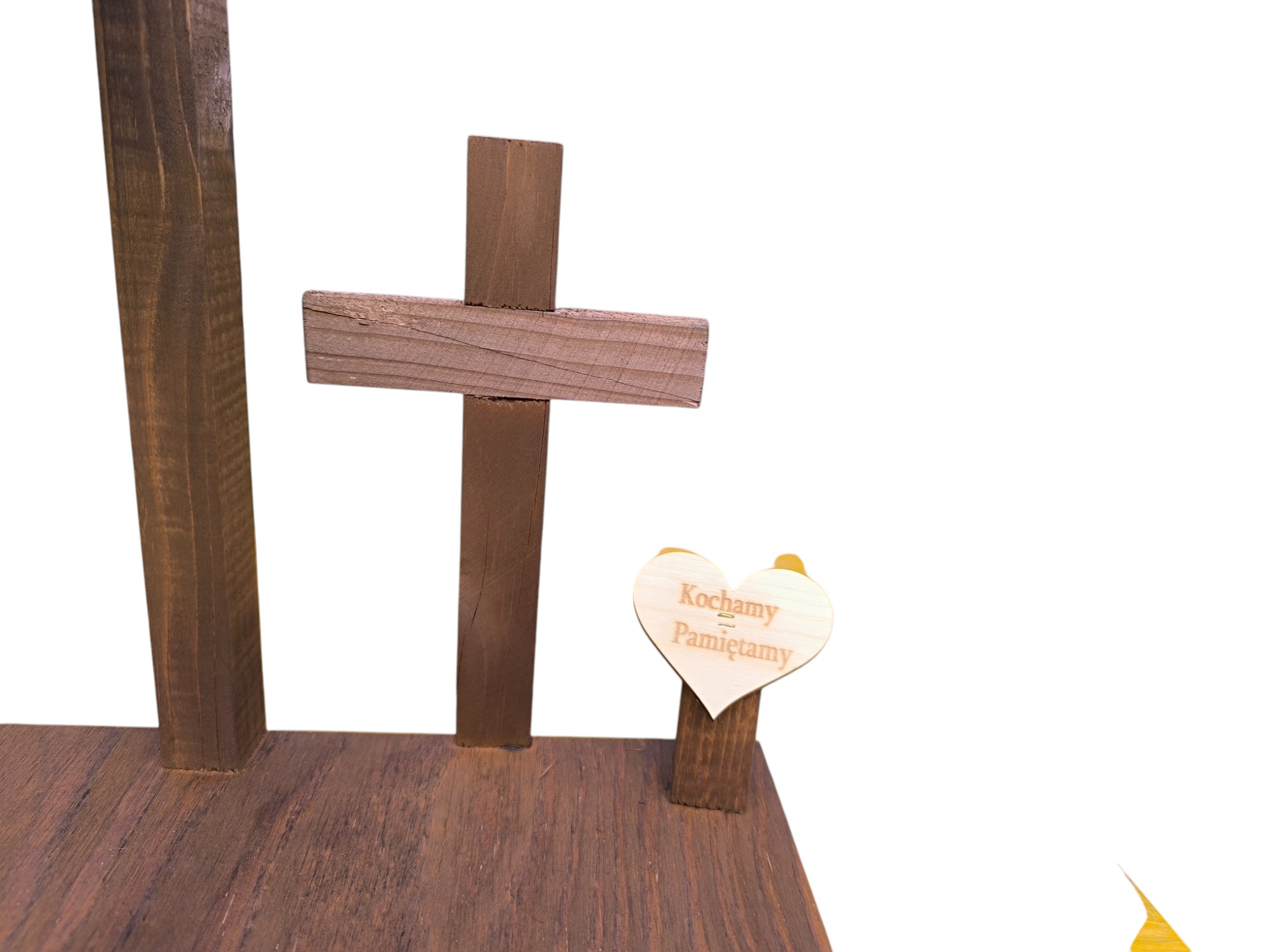 Lampion drewniany z krzyżem i sercem „Kochamy Pamiętamy” – idealny na cmentarz, do kapliczki i na Święto Zmarłych