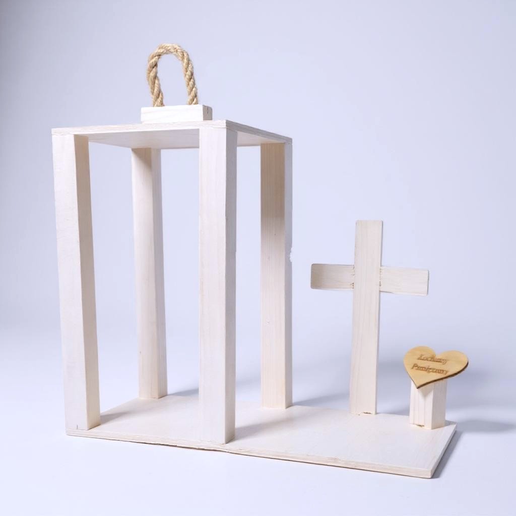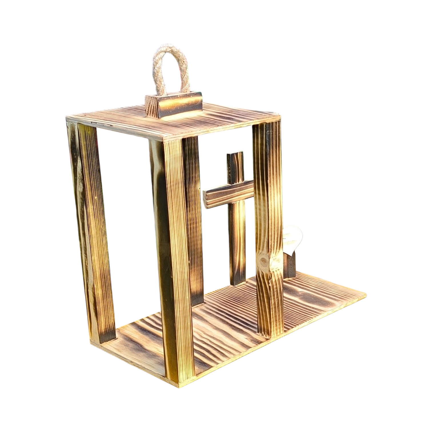 Lampion drewniany z krzyżem i sercem z grawerowanym – idealny na cmentarz, do kapliczki i na Święto Zmarłych