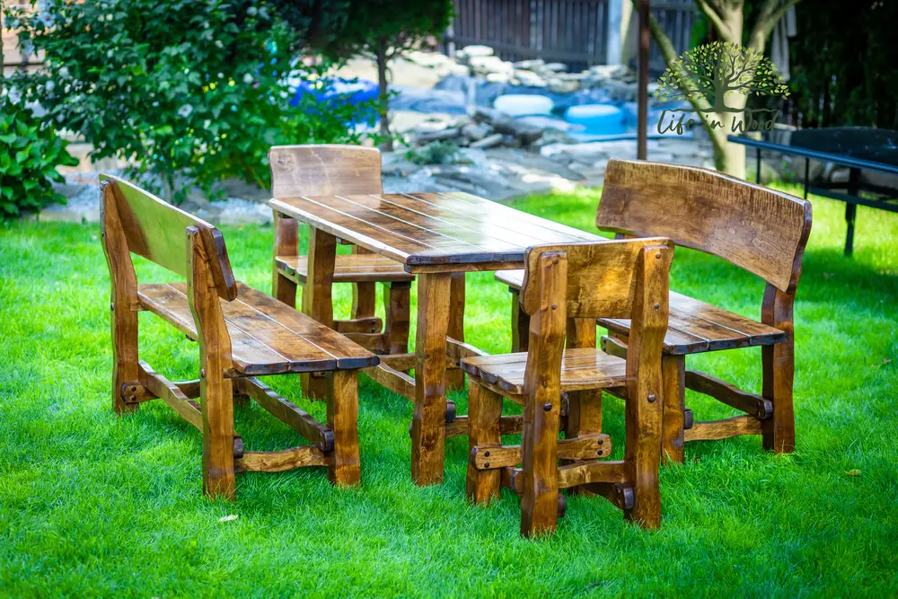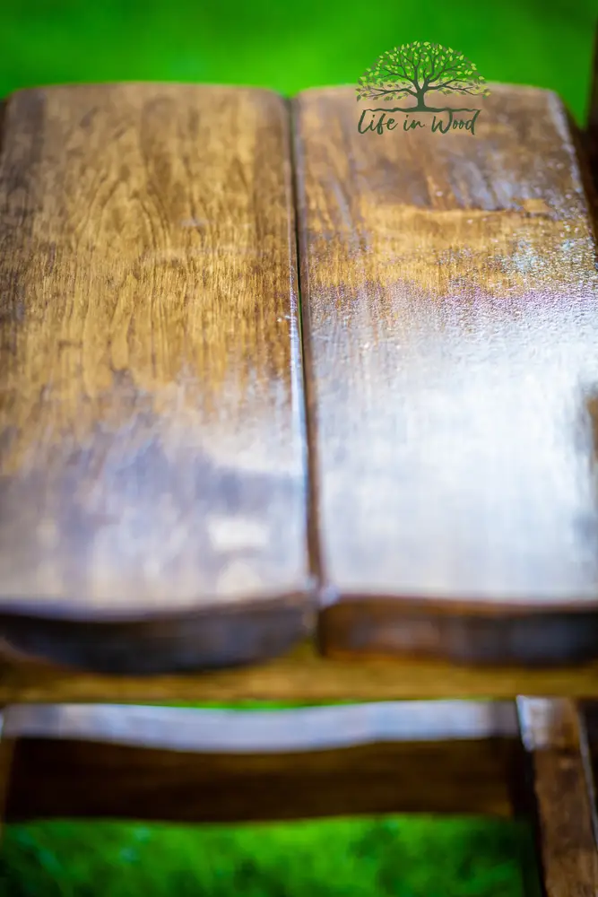 Grubość elementów: deski 3,3 cm, nogi 8×8 cm – to solidny i masywny produkt, a nie lekka ławka z cienkich listewek jak w marketach, czy większości sklepów na rynku.