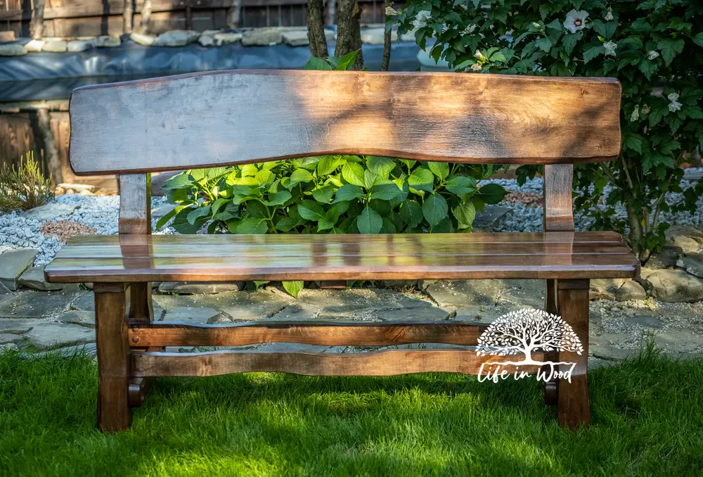 Ławka rustykalna z litego drewna — ręcznie robiona, gotowa do użytku, dostarczana w całości.