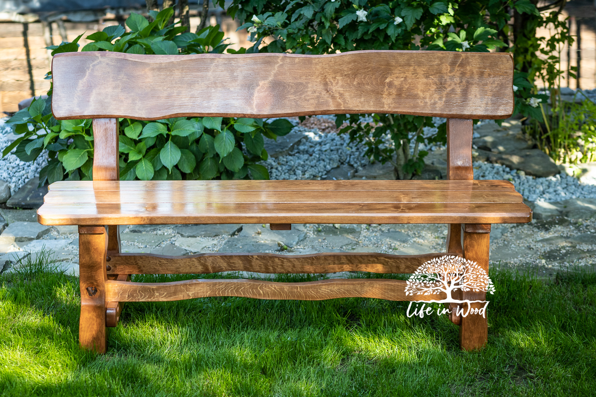 Solidna ławka drewniana z oparciem, wykonana w całości z litego drewna olchowego. To mebel, który łączy trwałość, wygodę i naturalne piękno drewna liściastego. Idealnie sprawdzi się nie tylko w ogrodzie, ale też w ogródku piwnym, restauracji, pensjonacie, domu drewnianym, domku do wynajęcia czy altanie biesiadnej czy na tarasie.