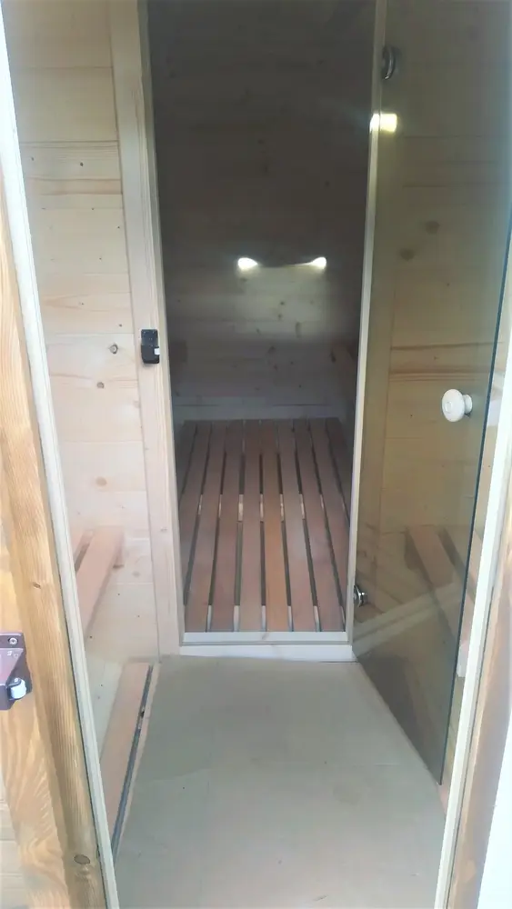 Środek sauny jest naturalny, pachnący lasem. Dodatkowo zamontowana podłoga oraz ławki wykonane z drewna olchowego, które jest odporne na wysokie i niskie temperatury, oraz na zmianę wilgotności powietrza.