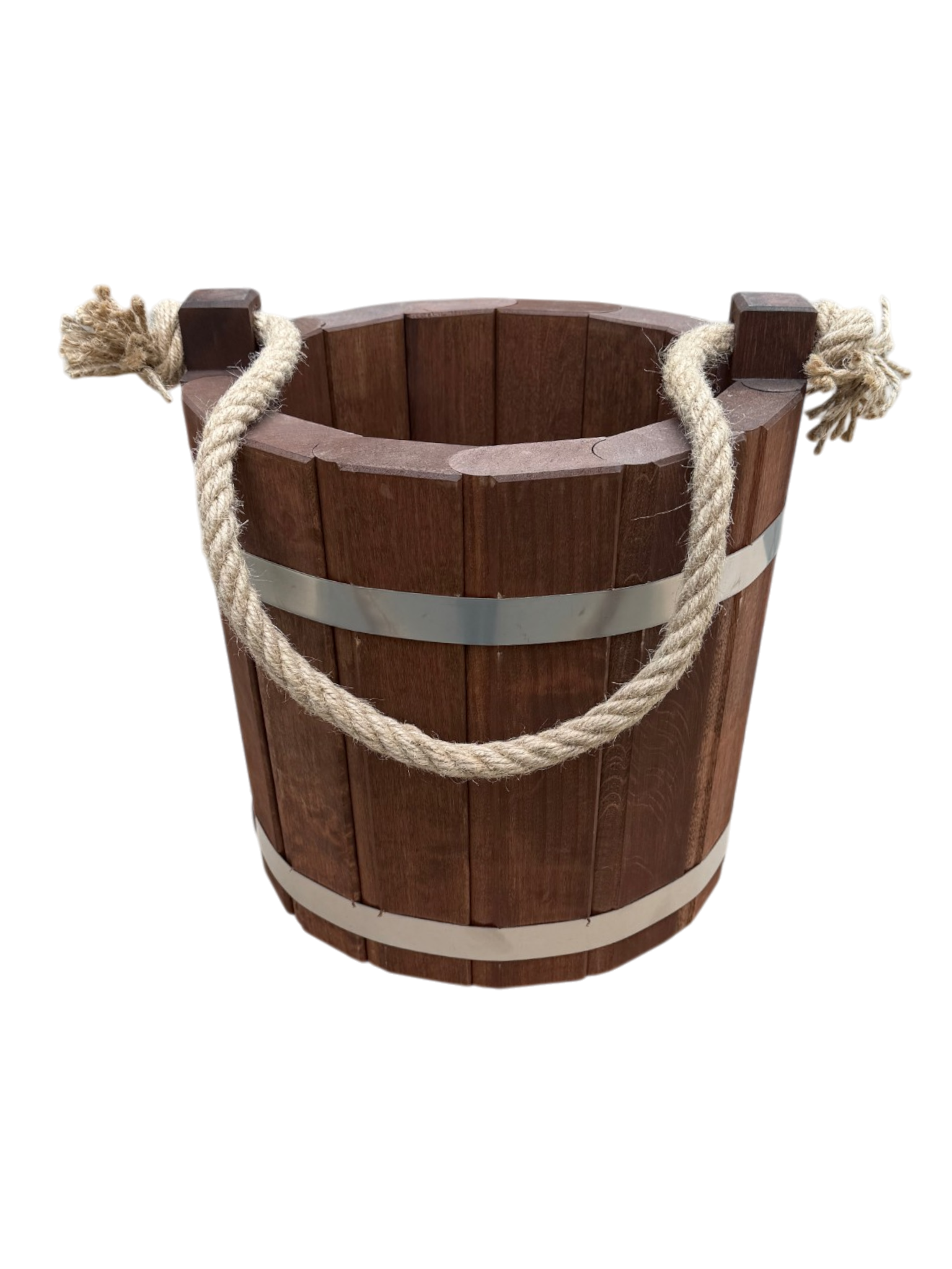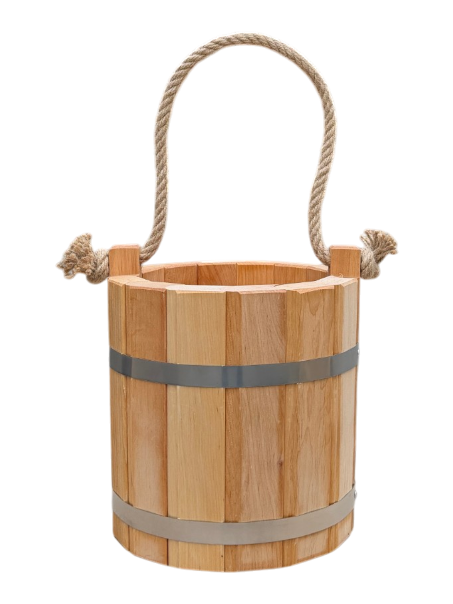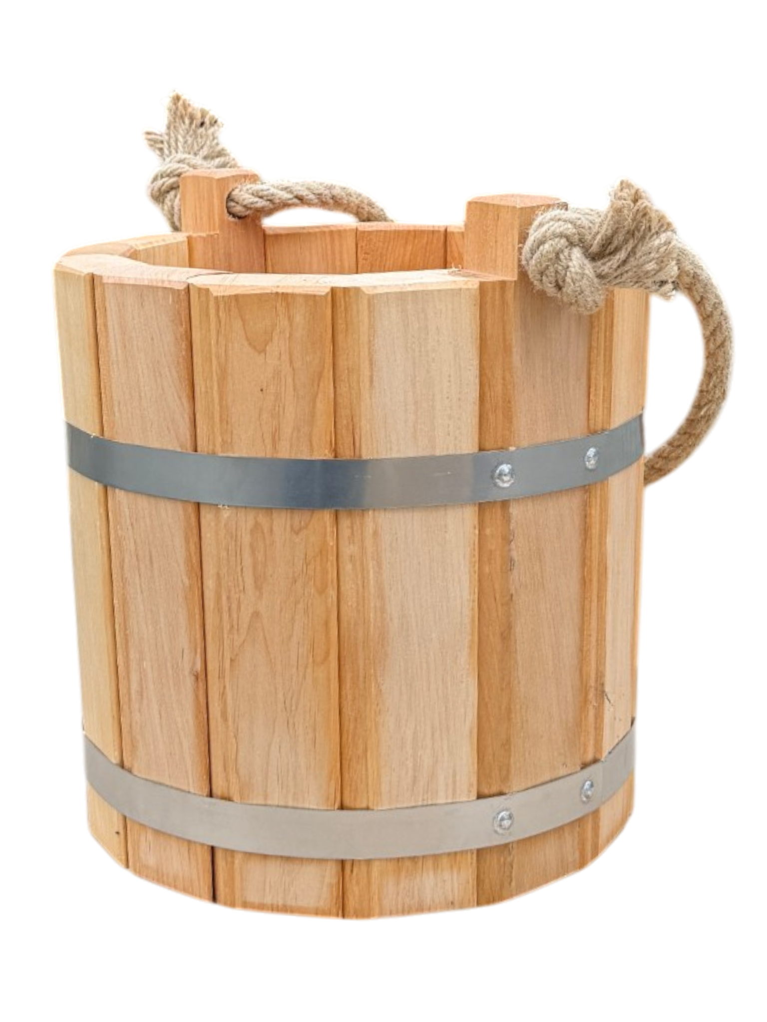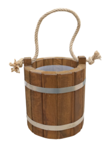 Nasze wiaderko zostało wykonane z myślą o trwałości produktu i odporności na uszkodzenia. Dlatego do jego wykonania wybraliśmy dobrej jakości drewno olchowe, które gwarantuje trwałość niezależnie od warunków pogodowych. Przy tworzeniu wiaderka dbaliśmy o każdy szczegół i starannie dopasowaliśmy do siebie klepki, tworząc solidną konstrukcję. Opaski zostały wykonane ze stali nierdzewnej i są połączone nitami, dzięki czemu wiaderko jest szczelne i nadaje się do przenoszenia wody. Na początku wiaderko może lekko przeciekać do czasu tzw. „spuchnięcia” drewna, po którym uszczelnia się i dopasowuje do opasek. W razie potrzeby można opaski opuścić lub dociągnąć wraz ze zmieniającą się objętością drewna.