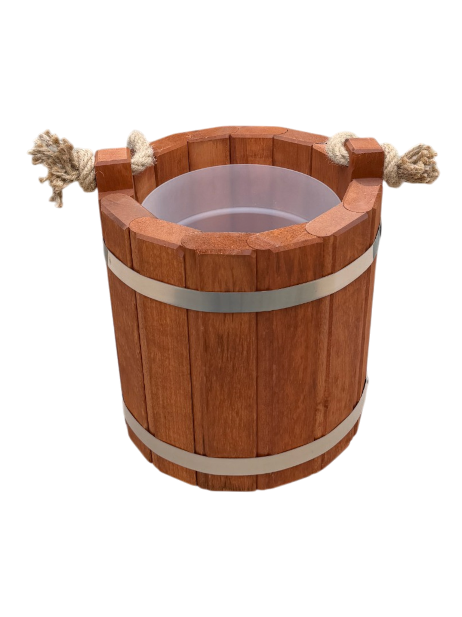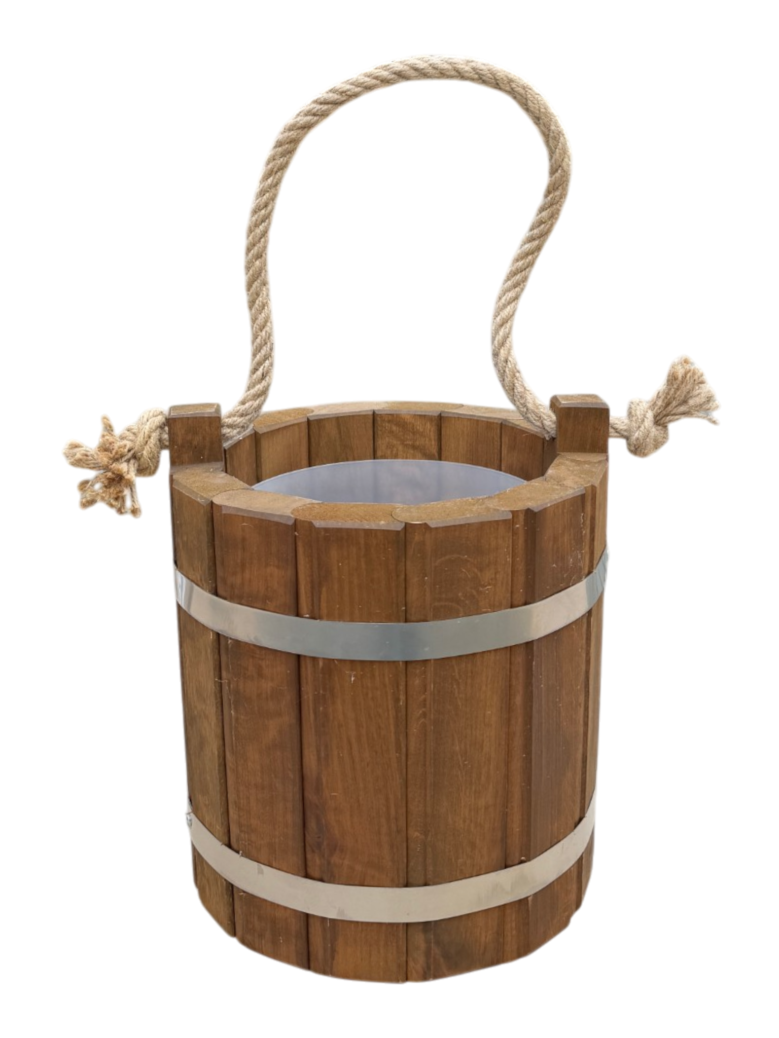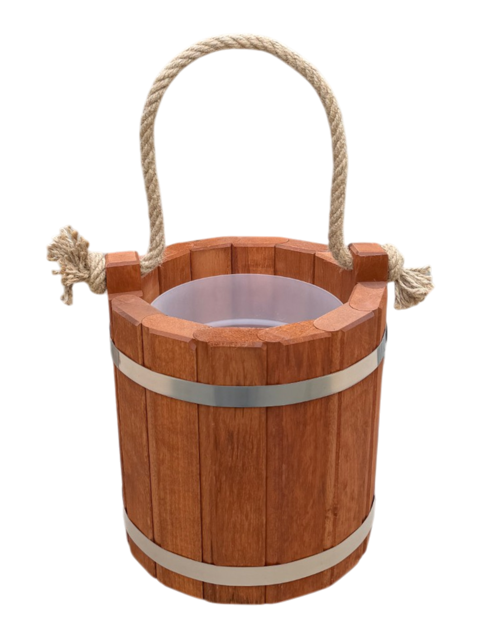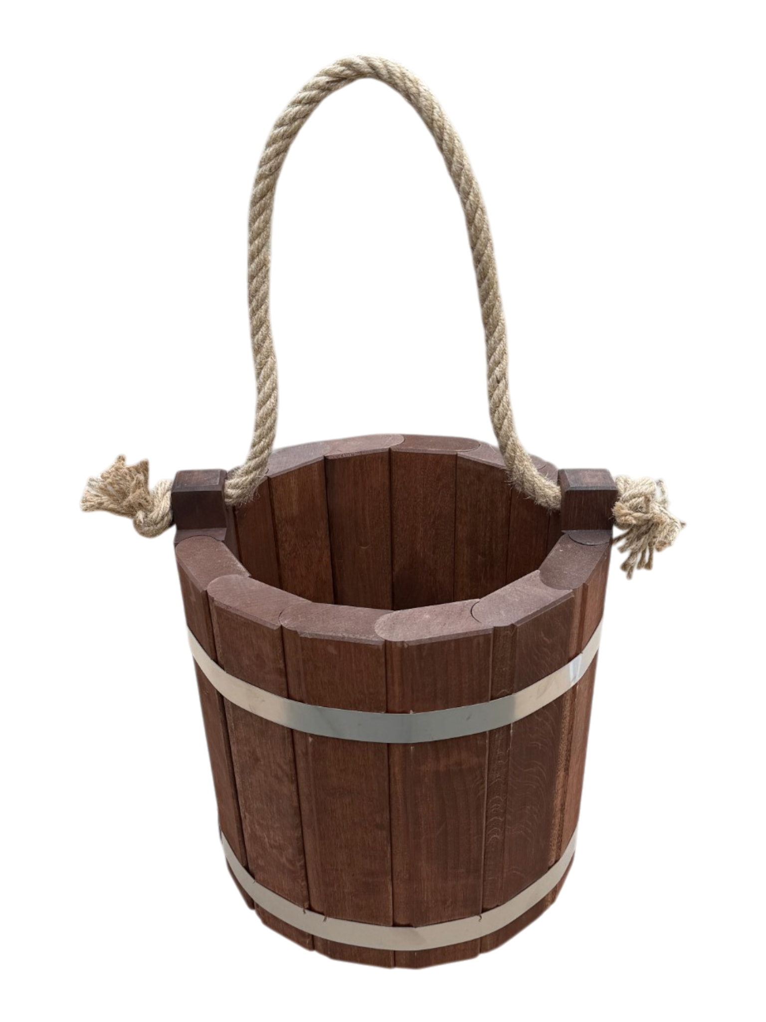 Nasze wiaderko zostało wykonane z myślą o trwałości produktu i odporności na uszkodzenia. Dlatego do jego wykonania wybraliśmy dobrej jakości drewno olchowe, które gwarantuje trwałość niezależnie od warunków pogodowych. Przy tworzeniu wiaderka dbaliśmy o każdy szczegół i starannie dopasowaliśmy do siebie klepki, tworząc solidną konstrukcję. Opaski zostały wykonane ze stali nierdzewnej i są połączone nitami, dzięki czemu wiaderko jest szczelne i nadaje się do przenoszenia wody. Na początku wiaderko może lekko przeciekać do czasu tzw. „spuchnięcia” drewna, po którym uszczelnia się i dopasowuje do opasek. W razie potrzeby można opaski opuścić lub dociągnąć wraz ze zmieniającą się objętością drewna.