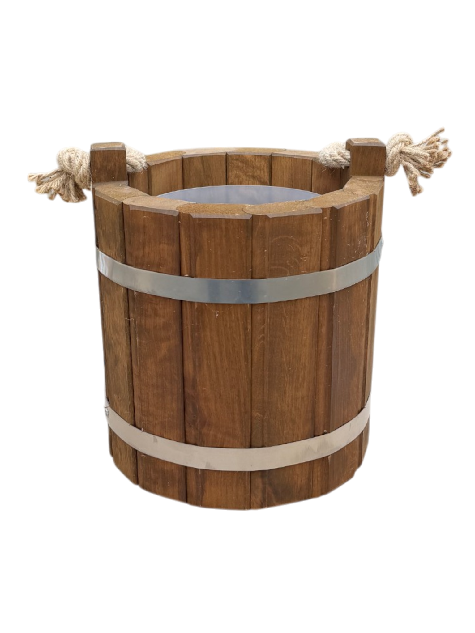 Wiaderko zostało dokładnie zabezpieczone wybranym impregnatem, który jest dostępny w wielu kolorach, co pozwala dopasować je do wnętrza lub ogrodu. Dostępna jest również niemalowana wersja wiaderka, pozostawiająca naturalny urok drewna.