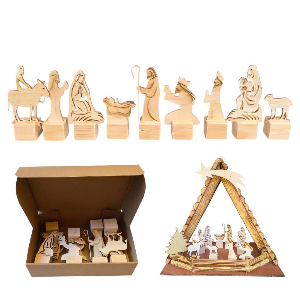 Wprowadź do swojego domu magię Świąt dzięki unikalnemu zestawowi drewnianych figurek do szopki bożonarodzeniowej.