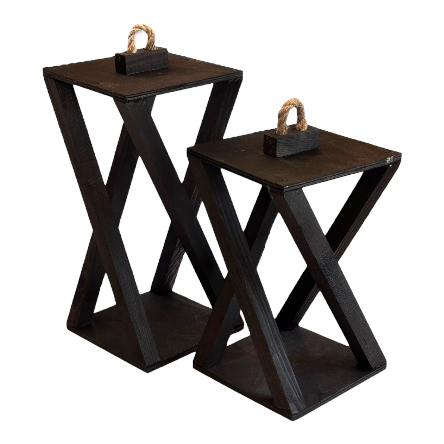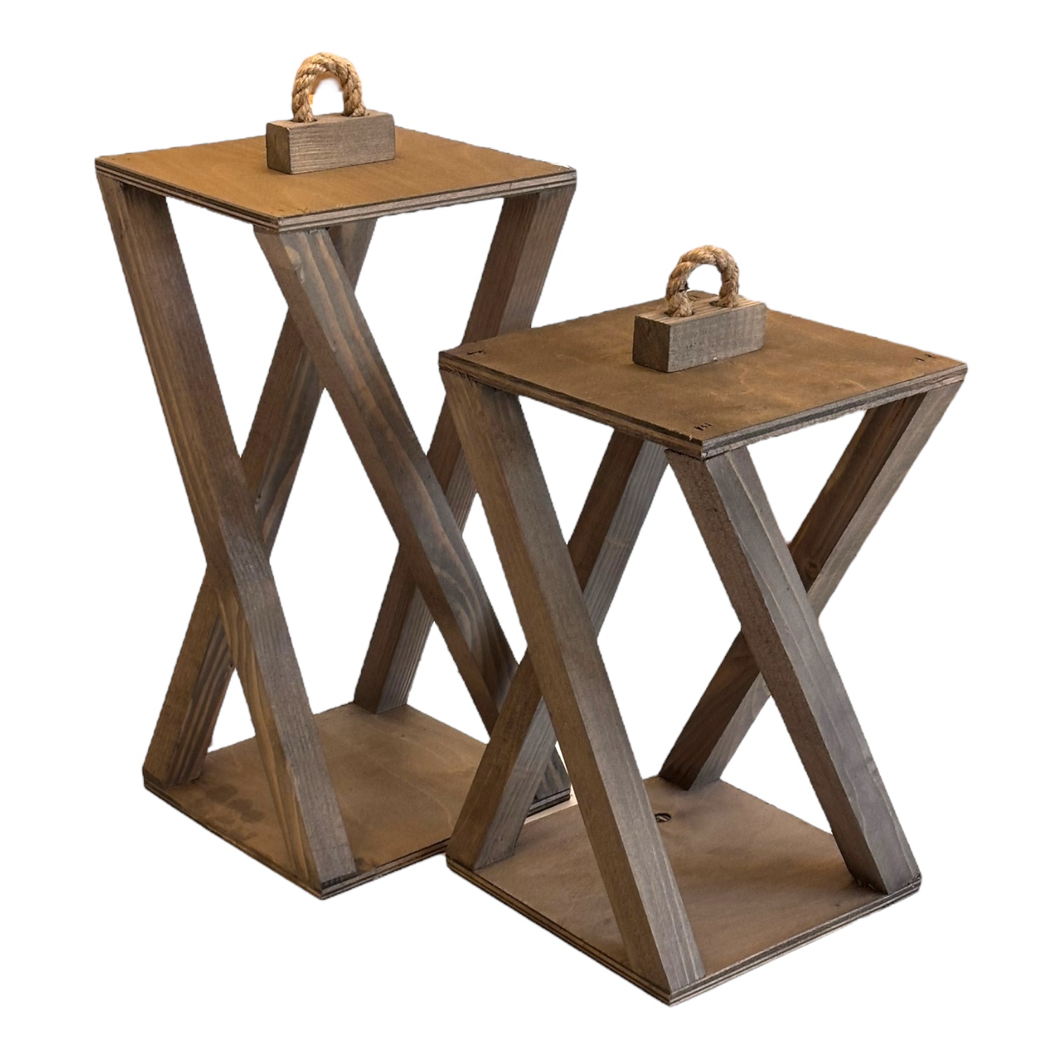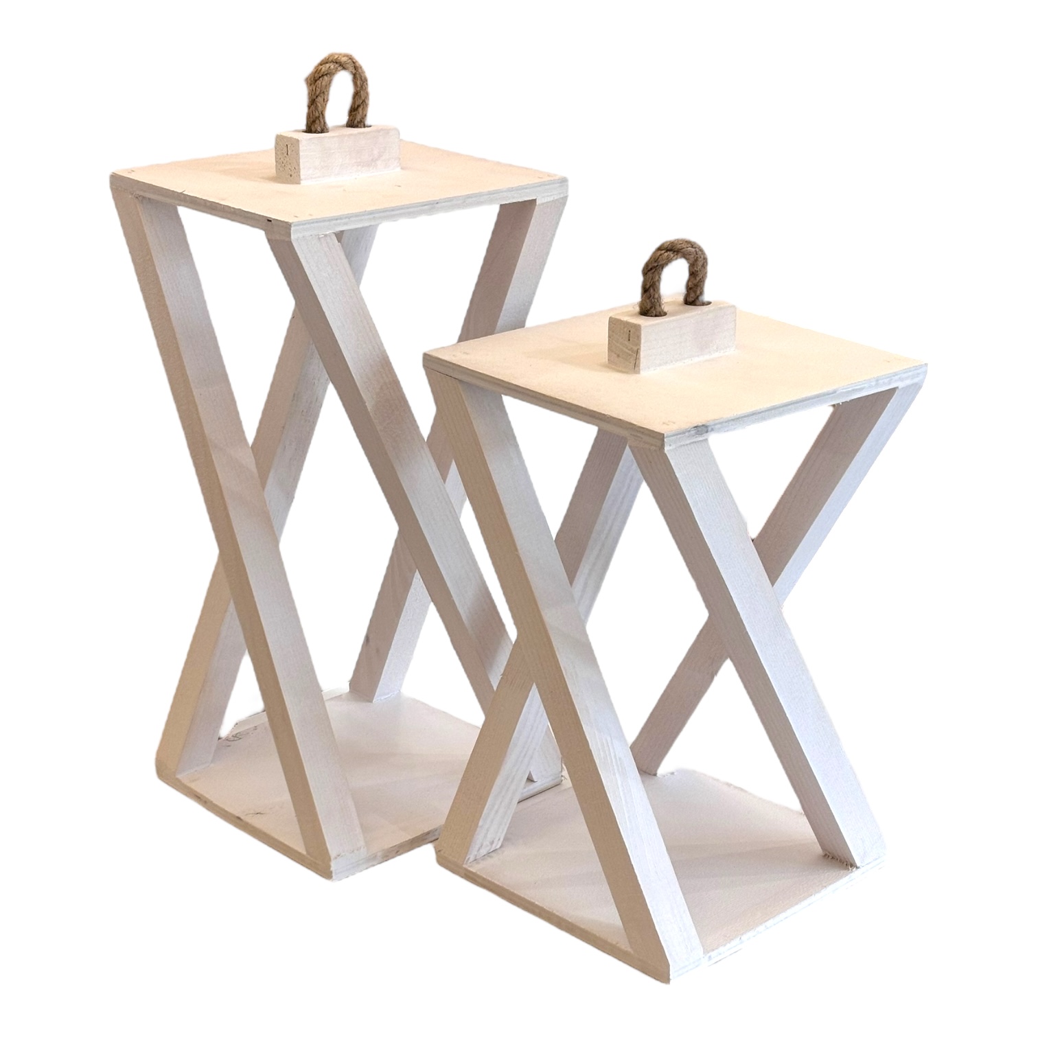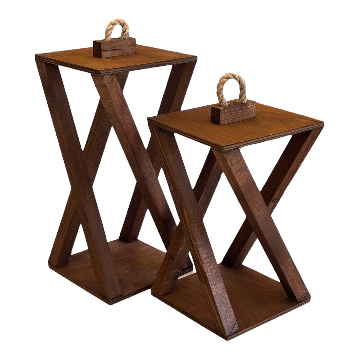 Zestaw dwóch drewnianych lampionów o wymiarach 40 cm i 45 cm