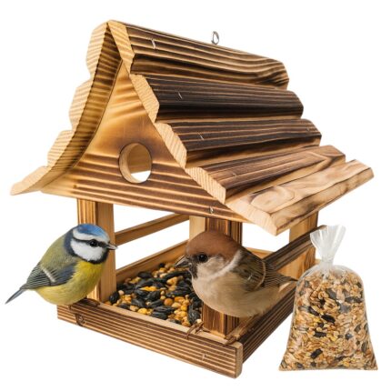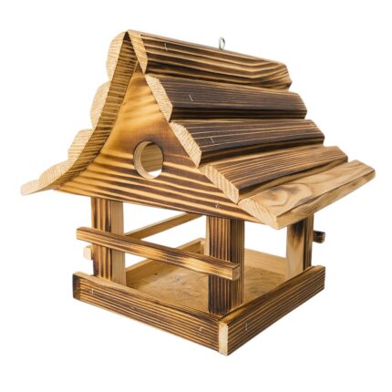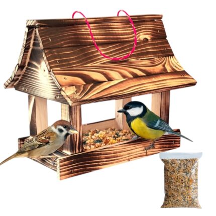 Drewniany karmnik dla ptaków – opalany + karma 100 g GRATIS