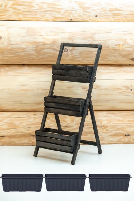 Kwietnik stojak drewniany rozkładany na kwiaty 3 skrzynki +3 wkłady – dostępne w 5 kolorach