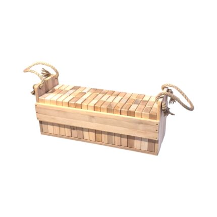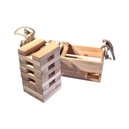 Klocki drewniane XXL w skrzynce – gra zręcznościowa, domino, wieża, zabawy plenerowe